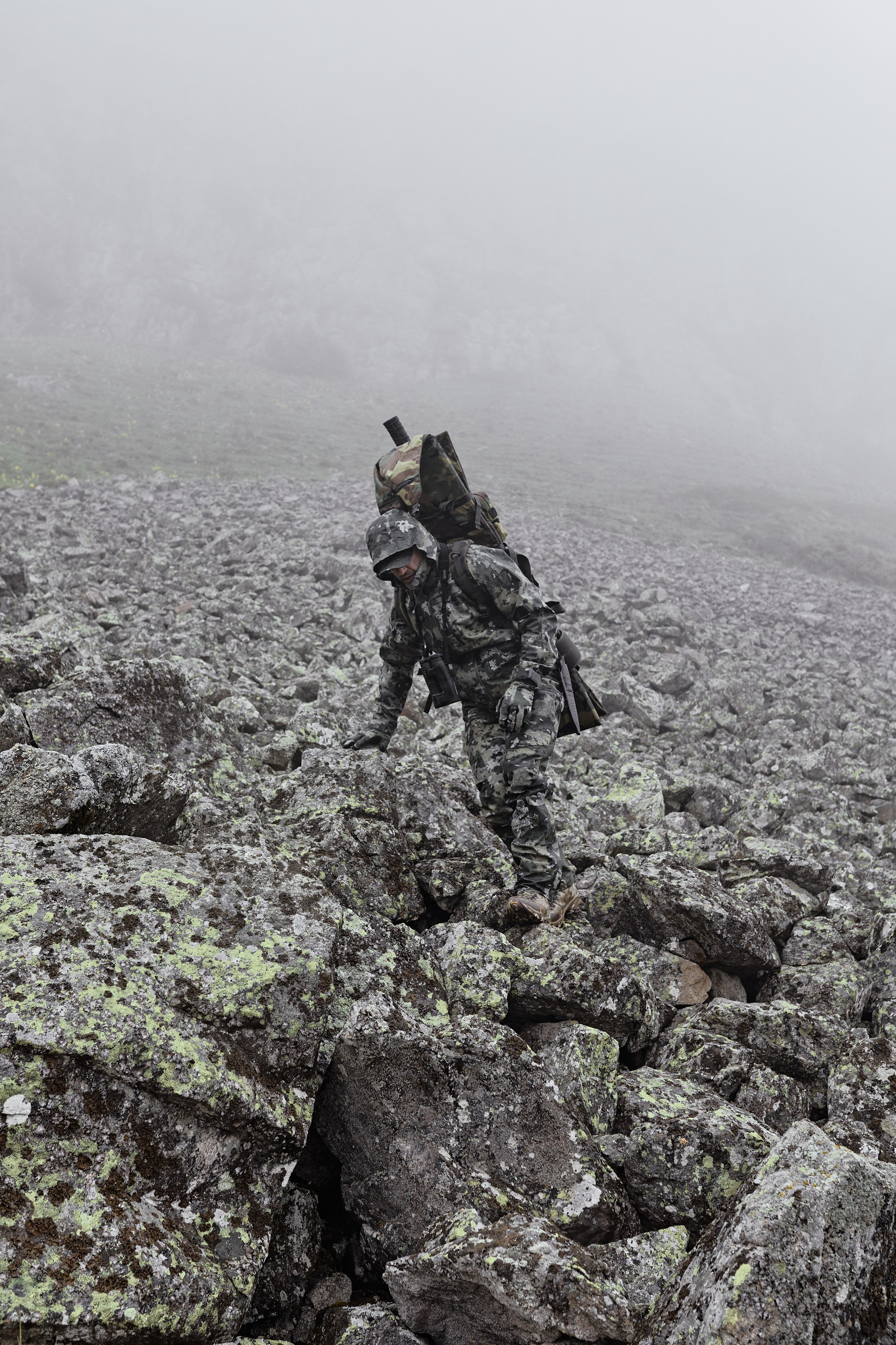 Задача от клиента отснять имиджевые кадры в локациях и рельефах, соответсвующих маскировочному принту и сезонности костюмов, показать в разных погодных условиях, демонстрирующих высокотехнологичность материалов и функциональность.